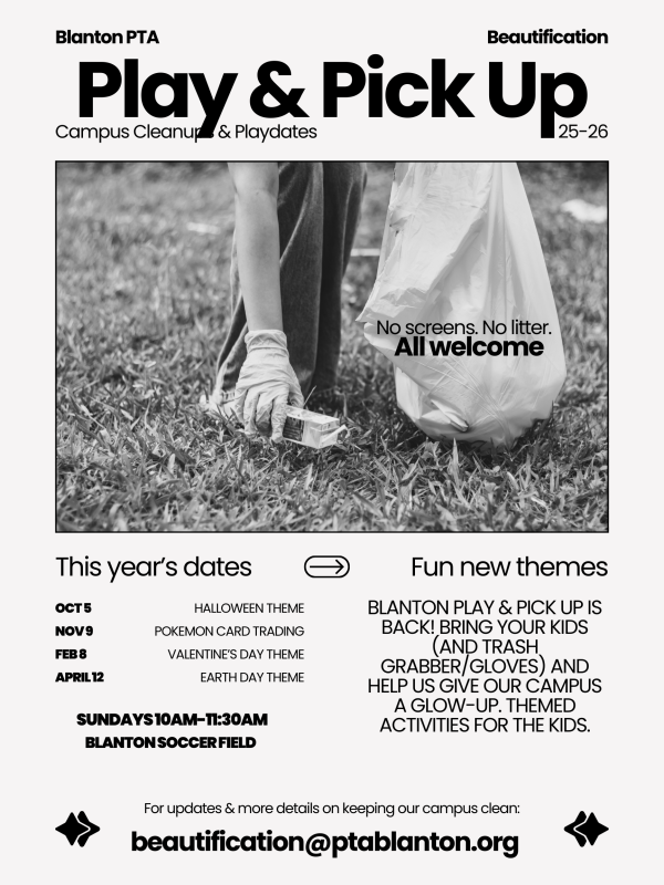 Join Blanton Elementary families and neighbors for a community cleanup at the school and nearby park!